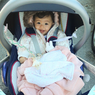 Entretanto já fez alguns trabalhos, já abana a mão a fazer adeus e com a música das galinhas, já senta direitinha (foi a custo). Continua a dizer muitas vezes mamã, e às vezes cacá, não sei se é a versão dela de papá. Continua a dormir muito mal em casa e a derreter-se toda com os manos. Dá beijos que apanham todas as nossas bochechas e abracinhos bons.