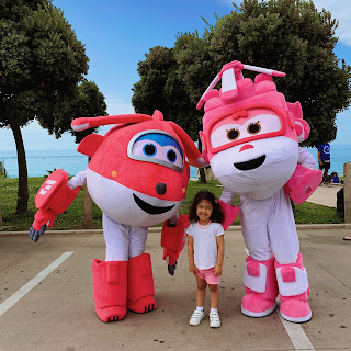 No dia em que fecharam a marginal enquanto o pai corria ao nosso lado, nós andávamos de bicicleta. A Constança vai à frente na Taga mas também já quer correr. Em Carcavelos encontrámos os Super Wings e foi o momento alto para ela.