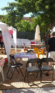 Ufa! Já está! Já se deu, e para o ano há mais. Que trabalheira e que canseira. Só agora me consegui sentar e respirar fundo. Tudo, ou quase tudo, arrumado e limpo. Que stress tremendo. Eu e a minha mania de ter tudo perfeito. Ou quase perfeito. Faltava o bom tempo de hoje. O vento era tanto que não houve balões que resistissem no portão. Volta e meia lá se ouvia um rebentar. Os pratos e os copos de plástico também dançaram pelo chão. E ao final da tarde, início de noite, a festa terminou e já estava frescote. Cansei-me a mim e a meio mundo. O meu sogro e a minha mãe que o digam, duas baixas de guerra! Mas o mais importante foi sentir os miúdos felizes, porque no fundo a festa era deles e para eles. Para o Afonso e também para a Bárbara, porque esta foi uma dupla festa. Ainda me lembro dela dizer o ano passado que era giro que o Afonso nascesse no dia de anos dela. E assim foi. O Afonso adorou o palhaço e as esculturas de balões. As pinturas faciais ficaram para os mais crescidos, que apesar de tudo ele ainda é pequenino. O Afonso também gostou da presença do Martim, colega da ama, do bolo com o desenho do Panda, que a avó mandou fazer na Garrett, das prendas todas sem excepção e dos doces. Pena muita gente ter chegado tarde. Pena os que faltaram. Pena o vento. Pena o meu cansaço. Porque de resto, de resto foi como há um ano atrás, no dia em que o Afonso nasceu, foi perfeito!