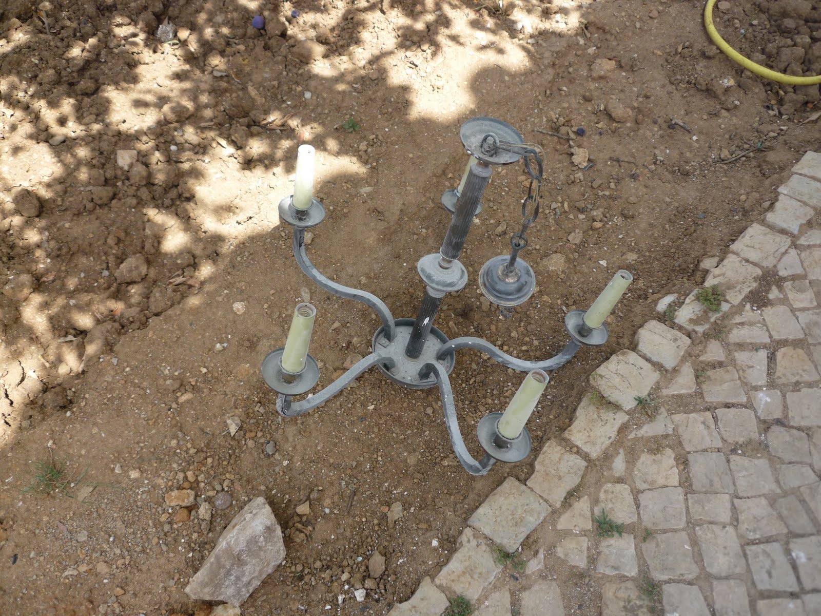Hoje, eu e a minha cunhada andámos a inventar. E não é que correu muito bem? Transformamos um candeeiro e uma moldura, com uma lata de tinta cor marfim claro, em spray que comprei no Leroy - que até o patrocínio é o mesmo he he - que é óptima por dar para aplicar sobre a ferrugem. O candeeiro foi-nos dado por uma prima do André que também comprou uma casa velhota em Cascais que anda a recuperar com o namorado e que tinha este e outros candeeiros antigos pendurados. Eu achei-lhes um piadão, e ela não gostava nada deles, daí que eu ofereci-me para ficar com eles mal os vi. Parecia que estávamos no "Querido, mudei a casa". Obrigada Liliana e obrigada Inês. Ficou mesmo muito giro. Parece outro candeeiro. Até as ferragens ganharam vida. Foi um grande antes e depois!