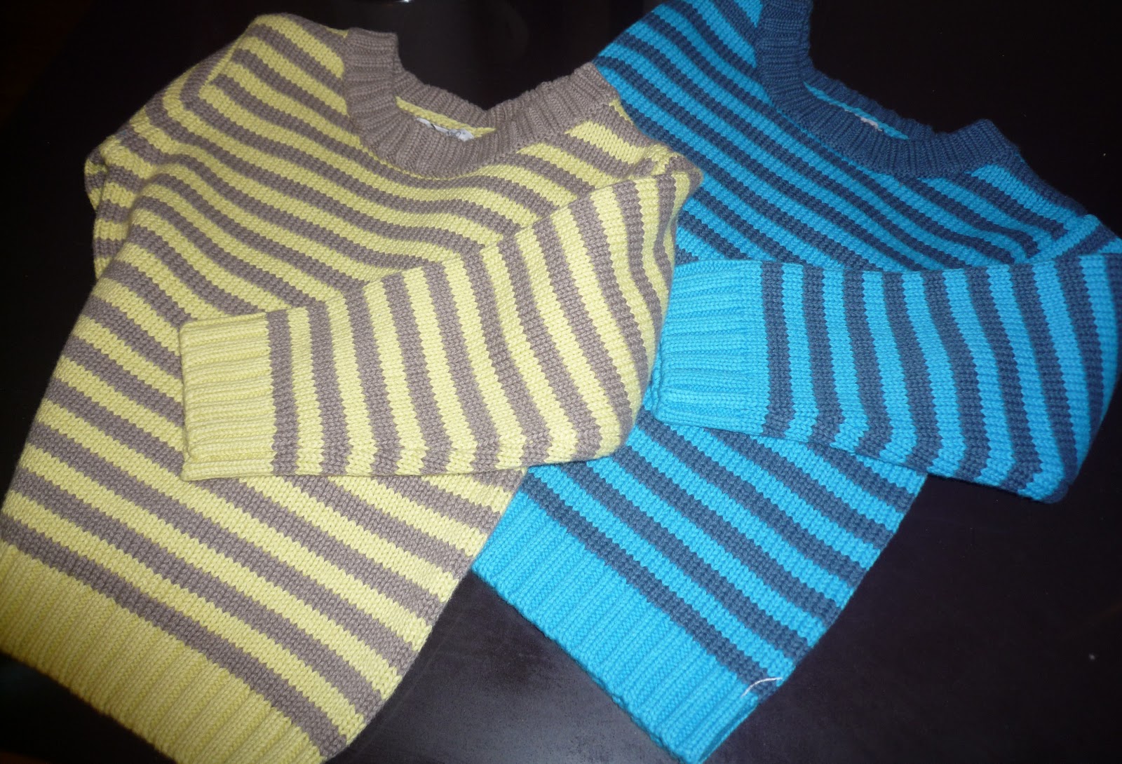 Já terminou a promoção do Joi no Jumbo. No último dia fui lá buscar quatro embalagens de seis. Duvido que tão cedo se repita embalagens de 1,5L a 0,40€. Como fui lá, reparei na roupa de bebé, que no Jumbo Online não vendem, e os preços são mesmo simpáticos. A da Zippy no Continente, a meu ver, está ficar um pouco cara. Compro coisas mais giras e mais baratas na Chicco. No Jumbo, vi estas camisolas de lã às riscas a 5€ e pouco, e não resisti. O Afonso vai ficar mesmo giro.