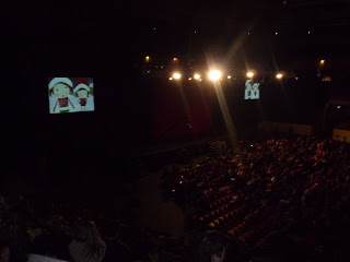 Depois de irmos ao festival do Panda no Parque dos Poetas a fasquia ficou um bocadinho elevada, mas de facto o Musical acabou por nos decepcionar. O frio não convidava a sair de casa rumo a Lisboa, mas lá nos enchemos de coragem, mesmo com os protestos do Afonsinho que não percebia ainda ao que ia. O trânsito ali ao pé estava um caos e foi um pesadelo para se estacionar, pois fecharam o parque de do recinto e tivemos de arranjar lugar fora do Campo Pequeno. Por um lado, ainda bem, pois penso que para sair iria ser um caso sério. Os pontos menos positivos para mim foram o facto de as bilheteiras serem no exterior, obrigando-nos a estar na fila ao frio com os miúdos e o recinto, que para albergar mais pessoas acabava por ter pouquíssimo espaço para as pernocas, ao jeito de lugar de avião. Se juntarmos a isto o facto de as crianças quererem dançar com as músicas, torna-se logo um pesadelo, pois não existe mesmo espaço para estar de pé. Os pais que ficaram em frente ao palco tiveram mais sorte, pois ai sim havia espaço mais do que suficiente para as crianças desfrutarem em grande do espectáculo. O ponto alto da noite foi o Afonso ter adorado. Quando percebeu que era o Panda dele que estava no palco ficou em êxtase, fartou-se de bater palminhas e palrar, e só pela sua alegria valeu muito a pena ter ido.