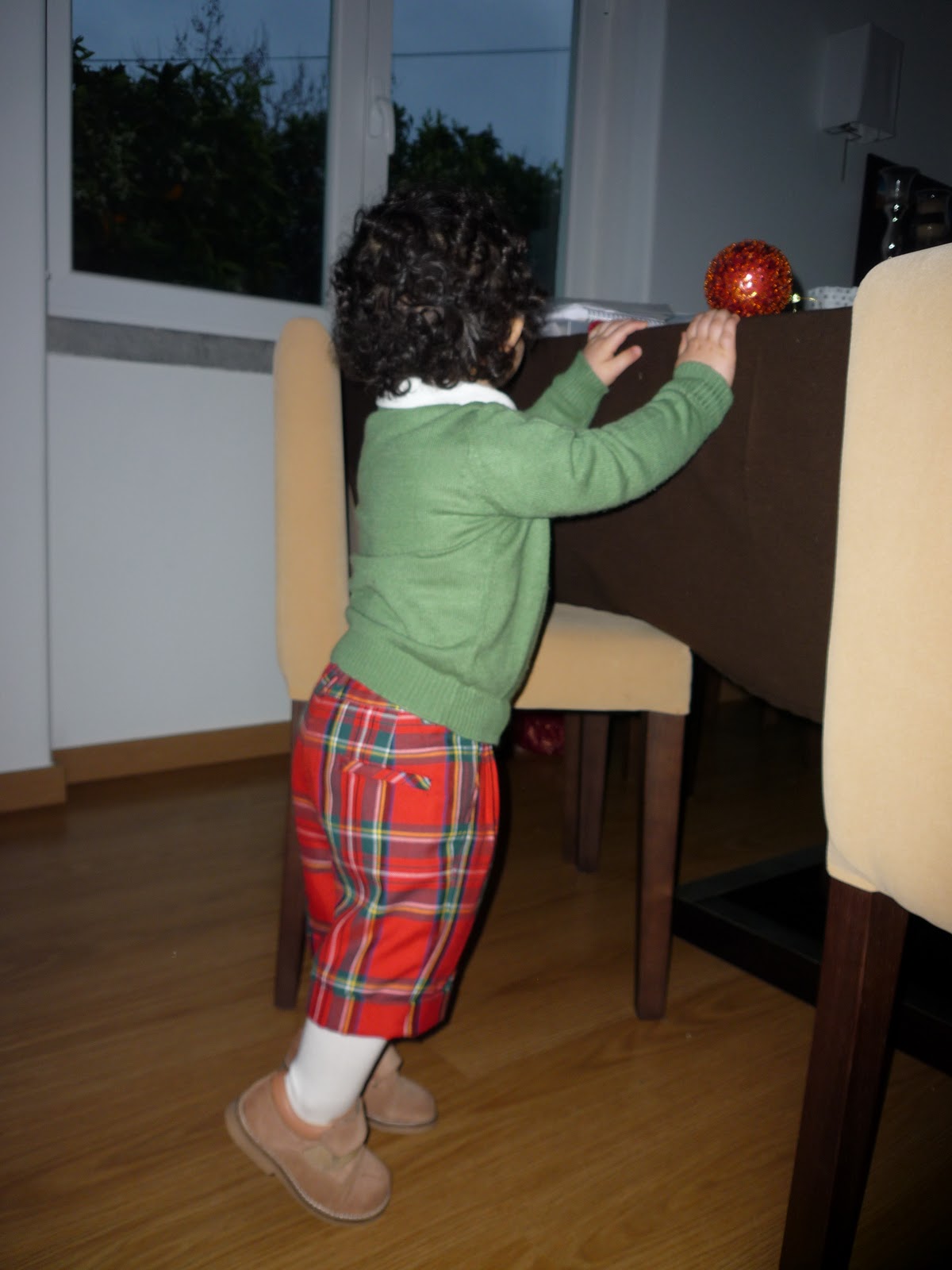 Gosto de estar com os amigos nesta altura do ano. Gosto de trocar presentes nas jantaradas e do pretexto do Natal para mais um reencontro. Gosto de sentir que somos, todos, uma grande família. Gosto deste espírito de alegria que nos invade, desta vontade de sermos todos mais unidos. Gosto das músicas antigas de natal, de fazer biscoitos, de vestir a casa de luzes e brilho. Gosto de escrever postais, de ver as luzes e enfeites nas ruas. Gosto de comer nozes e outros frutos secos, e bombons e bolo rainha. Gosto de beber chá e ficar a olhar para a árvore de natal a piscar. Gosto da alegria do Afonso com os embrulhos e com os presentes.