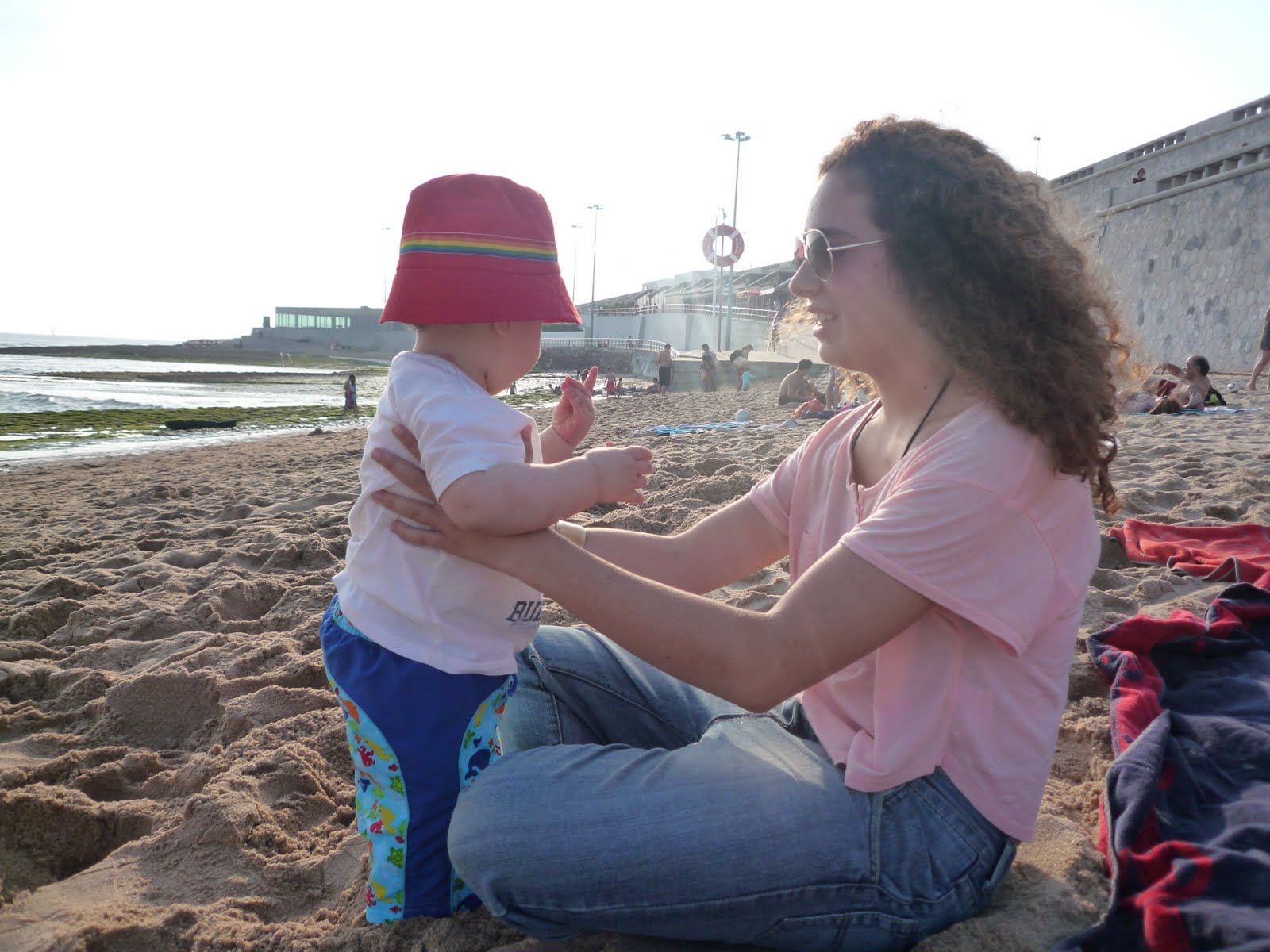 O Afonso foi à praia com os papás e com a tia. Adorou mexer e provar a areia. Adorou as gaivotas, os outros meninos e até a água, até vir uma onda que o molhou. O ano passado não pude aproveitar a praia porque estava muito grávida nesta altura do ano, com mais 20Kg e já não cabia em nenhum bikini ou fato de banho e custou-me gastar dinheiro numa coisa que iria usar pouquíssimas vezes. Acho o preço dos fatos de banho e bikinis de grávida um abuso. Por isso, foi com surpresa que, dois anos depois, vi a praia da Parede, a dos velhotes, toda arranjadinha. Gostei muito. Só tive pena que tivessem acabado com as barraquinhas, porque este ano iria alugar uma, provavelmente. O dia de ontem foi tão agitado, até de noite, que hoje o meu traquina dormiu até às 10h30m.