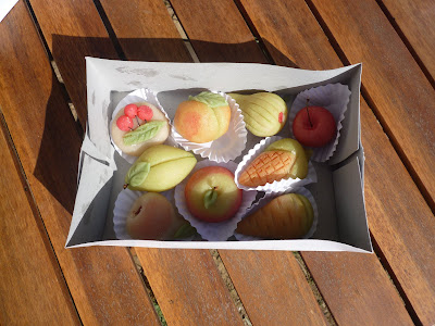 É tão bom quando nos cruzamos com pessoas atenciosas e educadas e que de alguma forma nos marcam pela sua amabilidade. No dia da escritura, como já referi, tudo o que podia correr mal, correu, e às 7h da tarde eu e o André ainda nem tínhamos almoçado. Eu sentia-me fraca, enjoada e triste e não consegui esboçar nenhum sorriso nesse dia. Hoje resolvemos uma situação pendente e a antiga proprietária da minha actual casinha, de nome Maria Manuela trouxe-me do Algarve uma caixinha de Morgadinhos de Amêndoa, também conhecidos por Amêndoas Encantadas, que parecem pequeninas obras de arte, para me dar um miminho, porque da última vez que nos vimos eu estava meia tristinha. Fiquei sem palavras. No dia em que fizemos o contrato de promessa de compra e venda havíamos tirado uma foto com os antigos proprietários para mais tarde recordar e poder mostrar aos meus filhos e netos. Afinal esta é uma casa com história, onde morou o jornalista Santos Guerra, e também o apresentador Fialho Gouveia. Eu gosto destas coisas. Destes pormenores. Daí que fiquei muito sensibilizada com o gesto de hoje e vou juntar foto destas pequeninas obras de arte à foto daquele dia especial. É um privilégio e um prazer quando na vida nos cruzamos com pessoas assim. Maria Manuela muito obrigada e bem-haja!