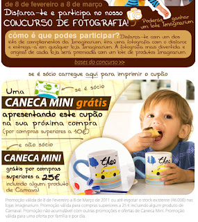 Bebés nascidos no mês de Fevereiro ganham um ano de taxa de entrega nas compras realizadas no Jumbo Online. Esta campanha deu-me imenso jeito quando o Afonsinho nasceu. Vi no folheto da campanha dos bebés e embora as condições ainda não apareçam no site, devem ser semelhantes às do ano anterior que pode consultar aqui http://www.jumbo.pt/frontoffice/ContentPages/Institutional.aspx?ContentType=avisoslegais ano do Tigre do lado esquerdo.